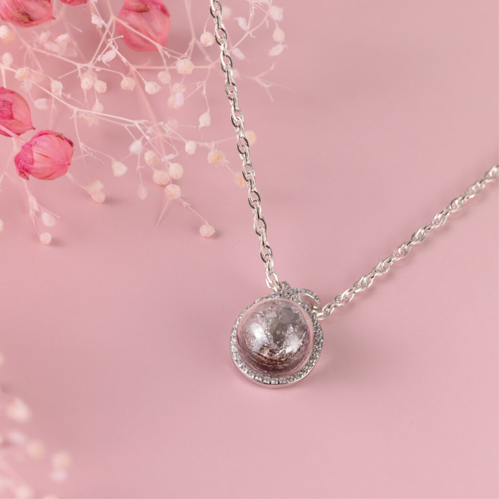 材質 : 925純銀項鍊 + 鋯石寶石 + 精工玻璃胎毛珠