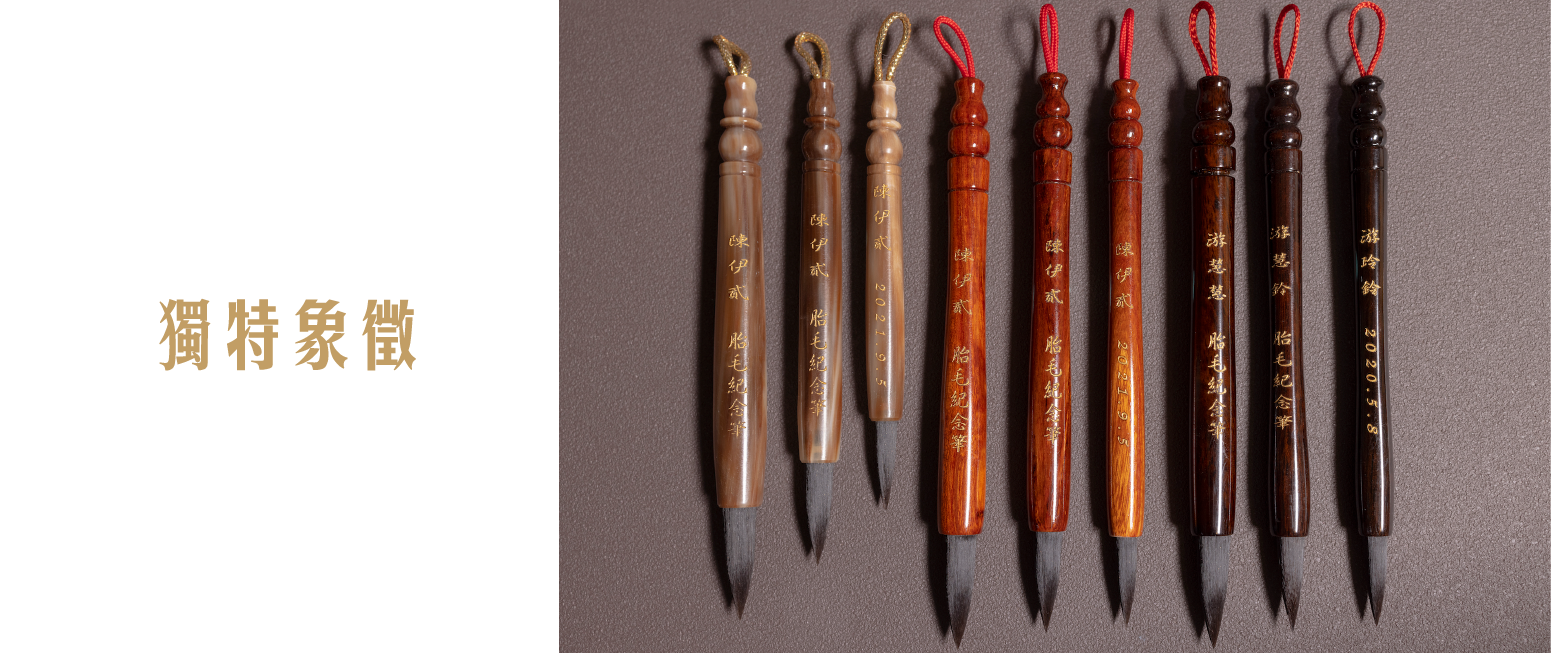 筆身雄渾厚實,模樣一改傳統修長的造型,以可愛渾圓的造型,更能搭配孩子出生後胖嘟嘟的小臉模樣,是給孩子禮物最搭的選擇! 筆身雄渾厚實,模樣一改傳統修長的造型,以可愛渾圓的造型,更能搭配孩子出生後胖嘟嘟的小臉模樣,是給孩子禮物最搭的選擇! 規格 大楷, 中楷, 小楷 材質 黑檀, 紫檀, 牛角